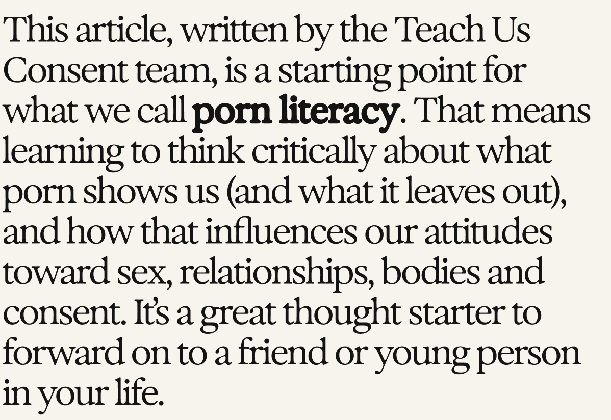 So next time you come across porn, take a second to think about what you're seeing. What parts seem unrealistic? What's being left out? Is everyone being valued?