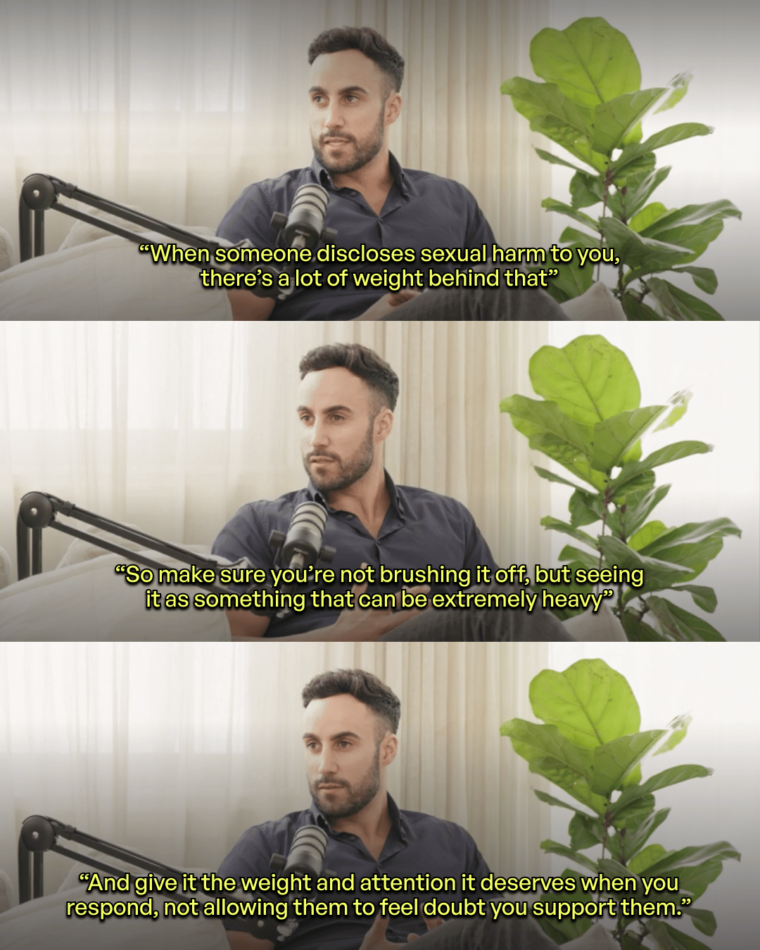 Having someone close to you disclose their experience can feel difficult and confronting, and that's perfectly normal. Most of the time, people don't know what to say or are terrified of saying the wrong thing. Here are a few things that go a long way: