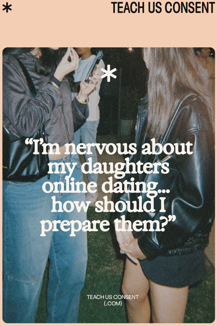 Talk through scenarios. Speak with your daughters about what they might do if they’re on a date – or talking to someone online – and they’re sharing unsolicited photos, ignoring their no’s, being disrespectful, or acting with any sort of entitlement to them or their bodies. Blocking a dating app “match,” cutting a date short, saying no, and asking for help when you need it are all dating preparedness skills. Get curious about their instincts. You might offer a scenario and ask what she might do in that situation. Tell them what you like about their plan and how you might make a different choice (rather than how they should make different choices). Let them present a scenario to you. Tell them how you would handle it and ask them what they might do differently.